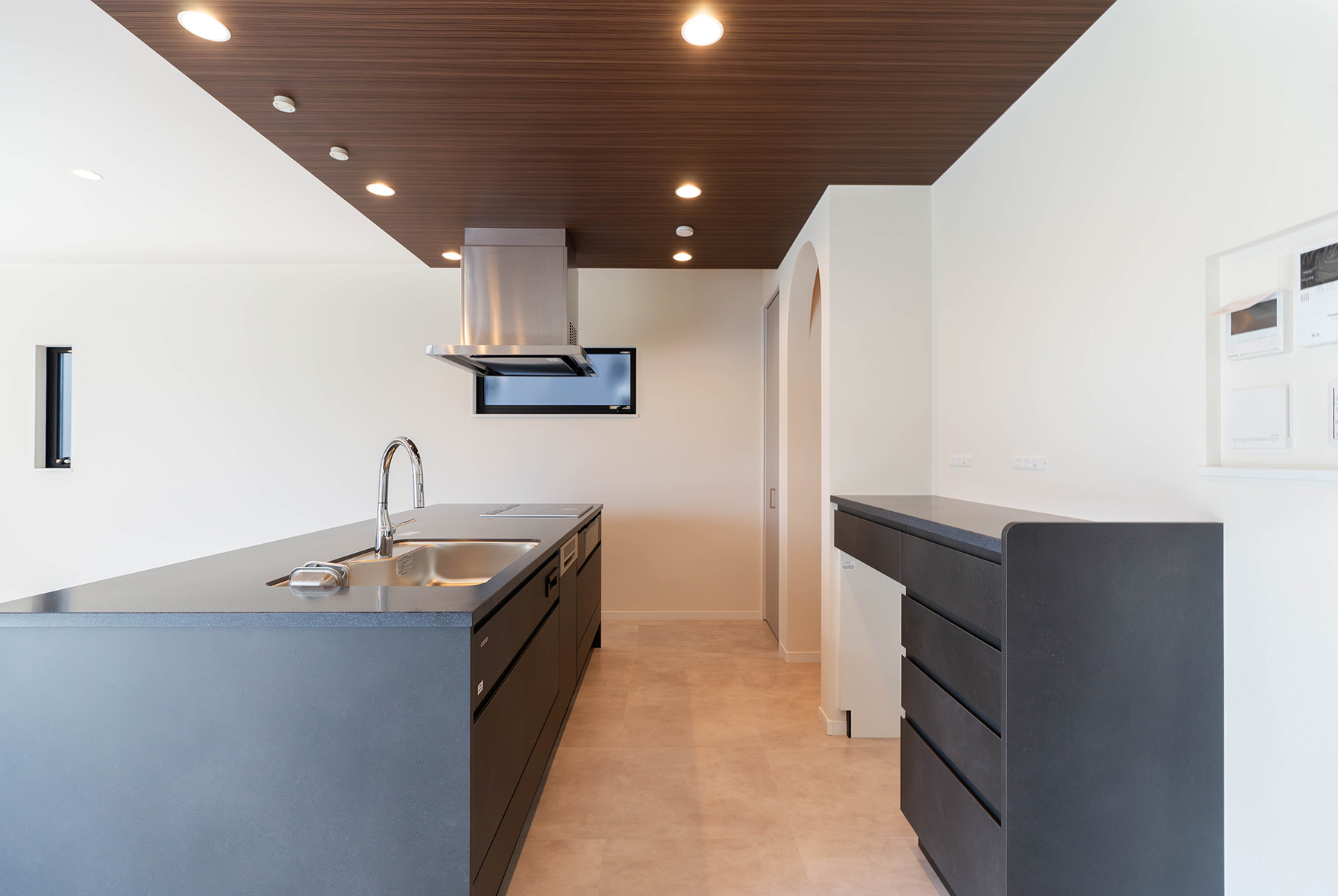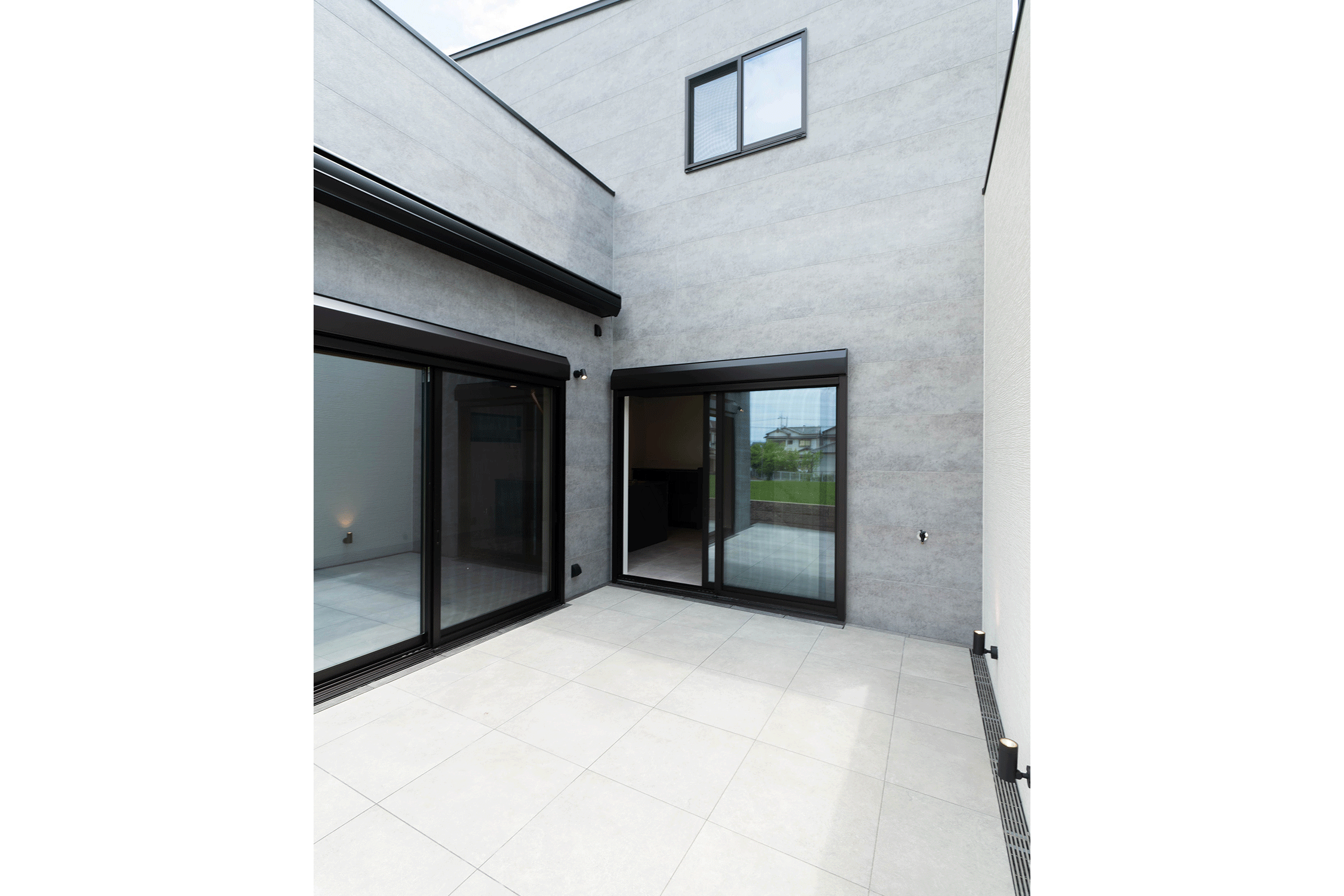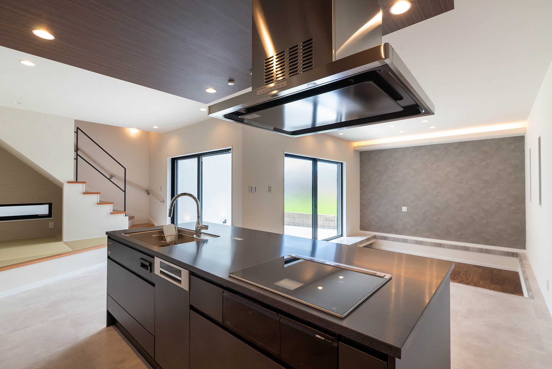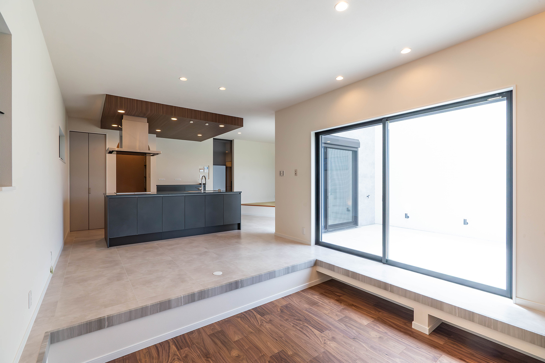 M様邸「開放的な中庭とステップダウンリビングで奥行きを演出。メリハリある寛ぎ空間」