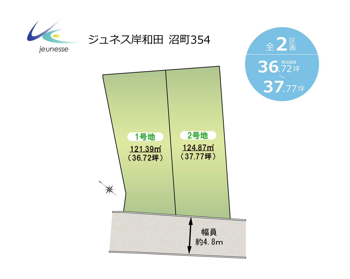 | 土地面積 | 121.39㎡(36.72坪)・124.87㎡(37.77坪) | 私道負担 | |